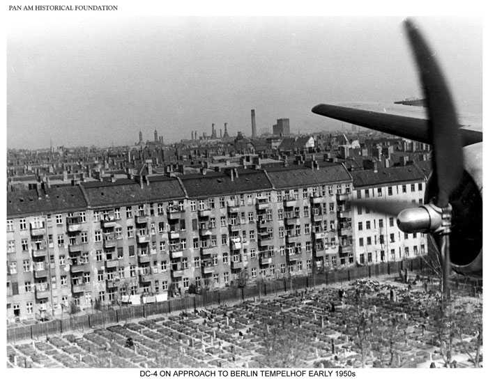 Berlin Airlift, early 1950s, Pan Am DC-4 approaching Tempelhof