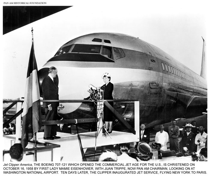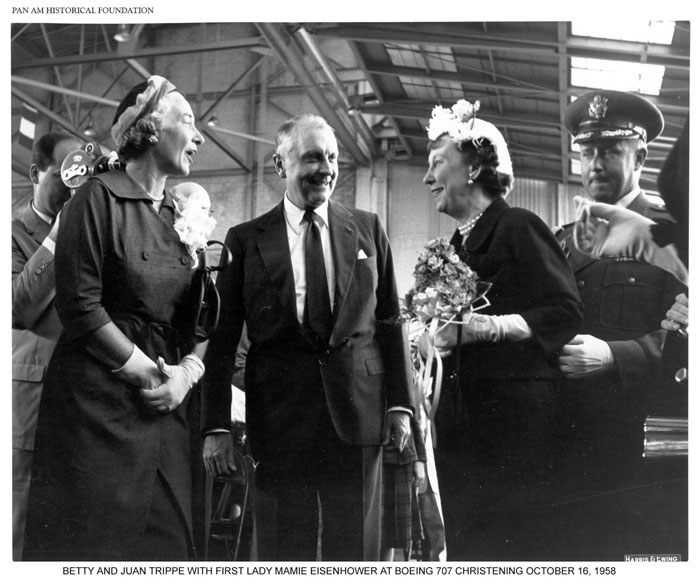 Juan Trippe with Mamie Eisenhower at Pan Am B-707 Christening, 1958