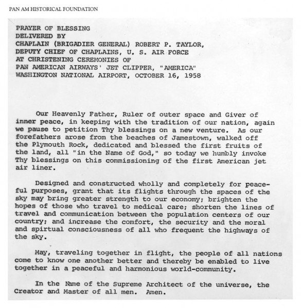 Prayer of Blessing for Pan Am Jet Clipper America, 1958