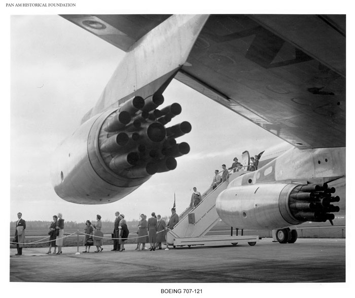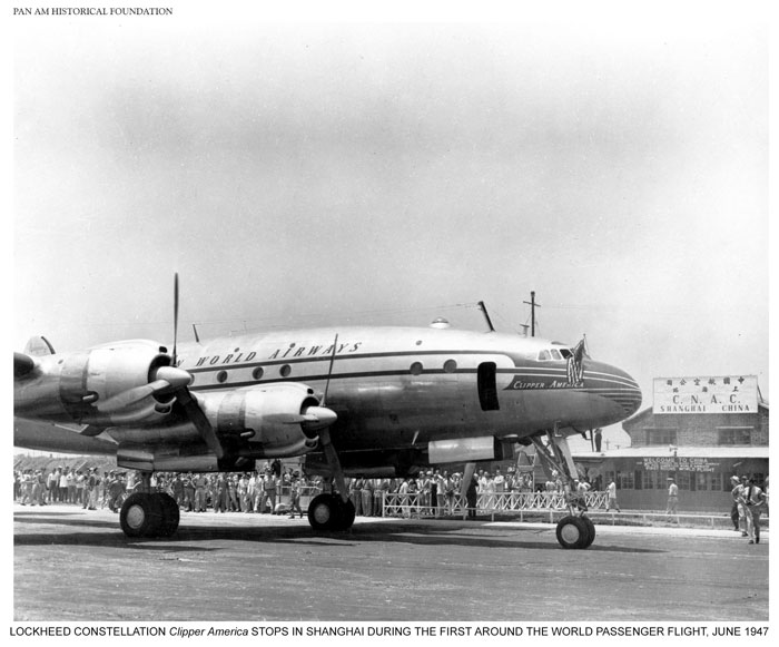 In the postwar era, PAA re-opened its Pacific and Atlantic routes, using new long-range land planes for services to Africa, Europe, and Asia. On 17 June 1947, Juan Trippe realized perhaps his greatest dream, by opening new Round-the-World schedules. New aircraft included the Constellations, Boeing 377 Stratocruiser, DC-6B, DC-7C (Seven Seas), then opened the new ""Jet Era" in October 1958. The B-747 opened a new "wide-body" era in 1970, with more comfort and efficiency. Internal German Services helped lead to an economic boom in Western Europe. Technical assistance projects were undertaken to many countries, such as Afghanistan, Turkey, and Pakistan, bringing modem airlines into being in many countries. Like the Latin American subsidiaries and affiliates, these gave their hosts technical skills, and corporate structures providing travel capabilities, to the benefit of local citizens. Pan Am's return from these was a more technically advanced world, and additional traffic feeds for our main routes. A fair exchange, thought Mr. Trippe, and most of us would agree.