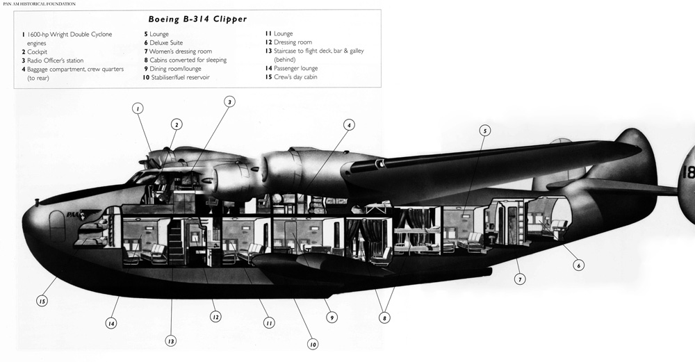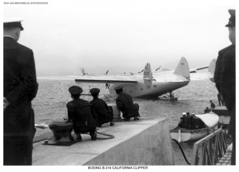 But now, two and one-half years later, the political way had been cleared with United State government authorities for a new route and mail contracts. The international arrangements were in place with Britain (for joint government oversight with the United States for Canton Island), and France (to land at Noumea in New Caledonia) to provide the stepping stone bases for the new four-day route. And the equipment, in the form of Boeing's magnificent B-314 flying boats, were now tried and true, along with numerous capably-trained crew to manage the task.