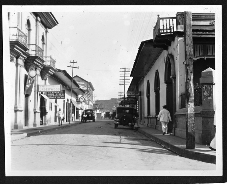 Street scene in the Panama Canal Zone, early years of Pan Am