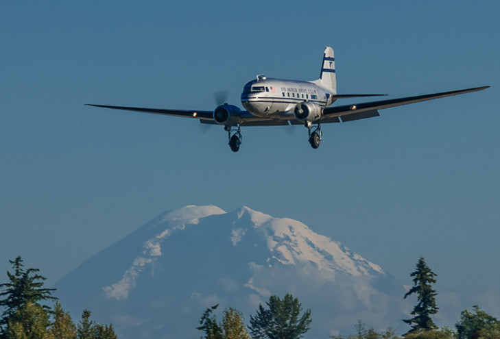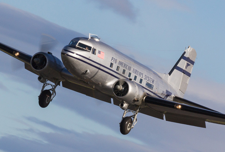 But she was rescued - which is a complicated story in itself - to be sent back to the US by ship. Once back where she started in California, she was refurbished and upgraded for what would turn out to be a variety of successive civilian owners. After many years, she eventually found her way in 2006 to the Historic Flight Foundation (HFF) at Paine Field in Everett, Washington, an organization that does its utmost to “keep ‘em flying.” The venerable C-47 was carefully restored to something close to its former passenger-carrying configuration. In 2012, now in 1949-era Pan American Airways livery, she was ready to fly again.