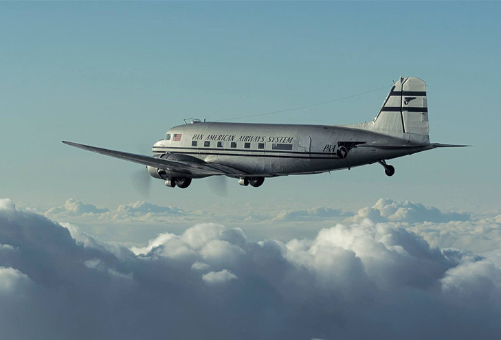 In 2019, Pan Am's CNAC #100, painated in Pan Am colors, flew over the Atlantic Ocean for Normandy's 75th Anniversary