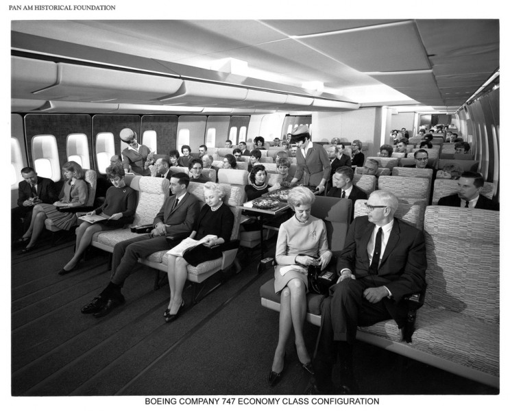 There was plenty of seating on a Pan Am Boeing 747 economy class.