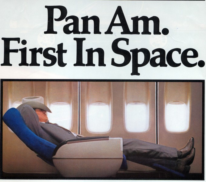 Pan Am Ad promoting comfortable seating: Pan Am First in Space