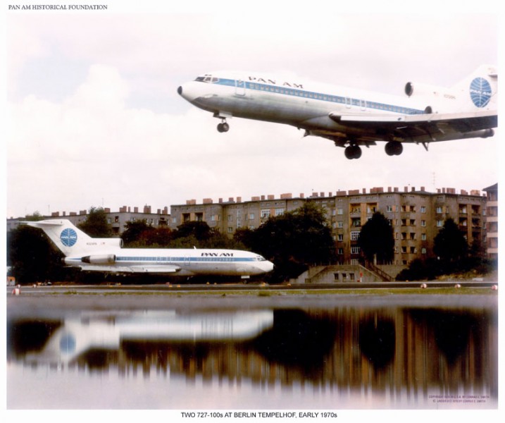 In those early post-war years, the Western Allies - France, Britain, and the U.S. - set up commercial air links to and from West Berlin, linking that city to the rest of West Germany and the world beyond. In April 1954, Pan American Airways formed the Internal German Service (I.G.S.) with a hub in Berlin and a technical base in Frankfurt. The IGS had many hundreds of German employees and a number of U.S. flight crews. Starting with a fleet of DC-4's, the fleet grew: DC-6's replaced the DC-4's by 1956, and by the end of 1966, the IGS operated an all-jet fleet, operating with Boeing 727's. With time these too were replaced with more modern aircraft. With German re-unification in 1989, the role of the IGS became superfluous, and the operation was taken over by the German carrier Lufthansa in 1990.