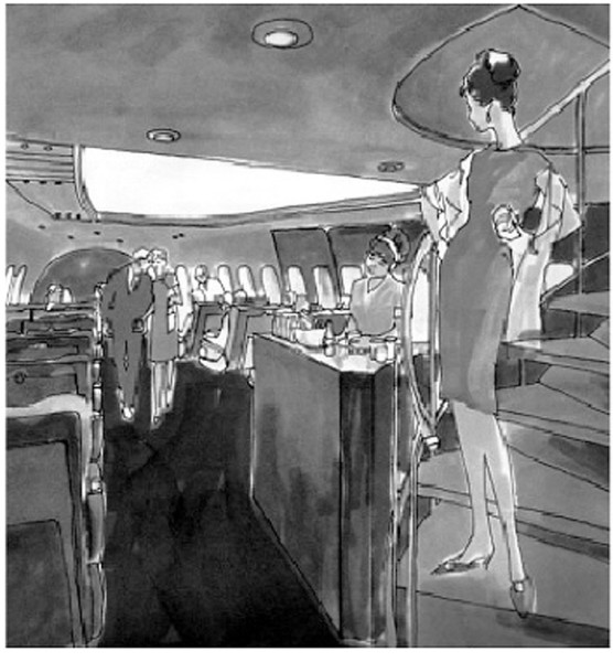 The inauguration of the 747, "The Queen of the Skies," took everyone into a new global era of travel where the emphasis was on passenger comfort and, for first-class passengers, the return of the cruise ship experiences with a "flying restaurant," bar and lounge.
