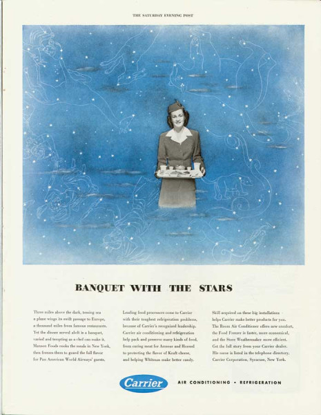 Traveling onboard Pan Am's big Clippers involved long hours taken up with reading, games and dining. Onboard heating of food came in 1935 for inflight meal preparation, with elaborate multi-course meals served on china and formal table settings.