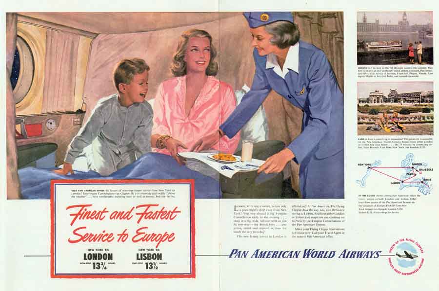 The Clipper Cruises of the flying boat era with overnight stops ended after World War Two, when passenger comfort was a lower priority. But post-war, with a booming economy that enabled many more travelers to fly to more exotic destinations, Pan Am renewed its focus on passenger inflight experience.