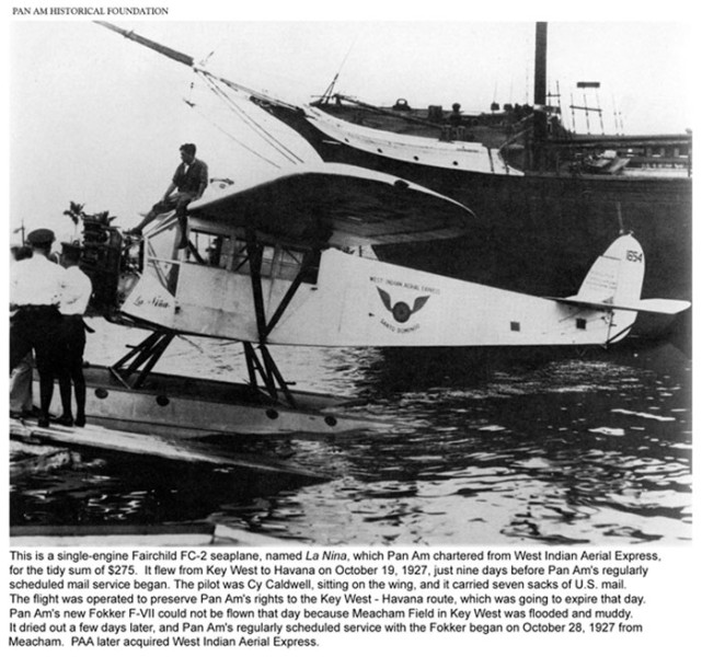 Pan Am First Flight from Key West to Havana: Cy Caldwell on La Nina, October, 19, 1927
