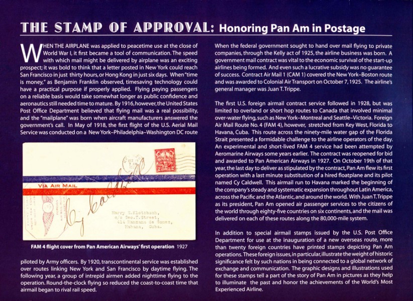 Based on the aerophilatelic collection of Mr. Craig Ludlow, a long-time senior analyst with Pan American World Airways, who started his Pan Am stamp collection in the 1960’s.