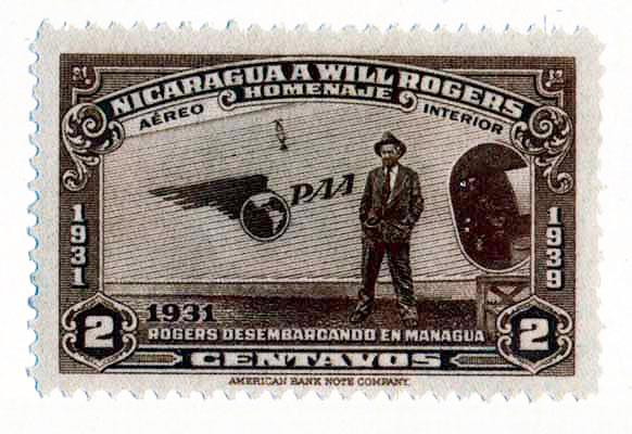 Nicaragua 2 cent stamp, 1931, with Will Rogers.