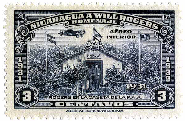Nicaragua 3 cent stamp, 1931 with Will Rogers