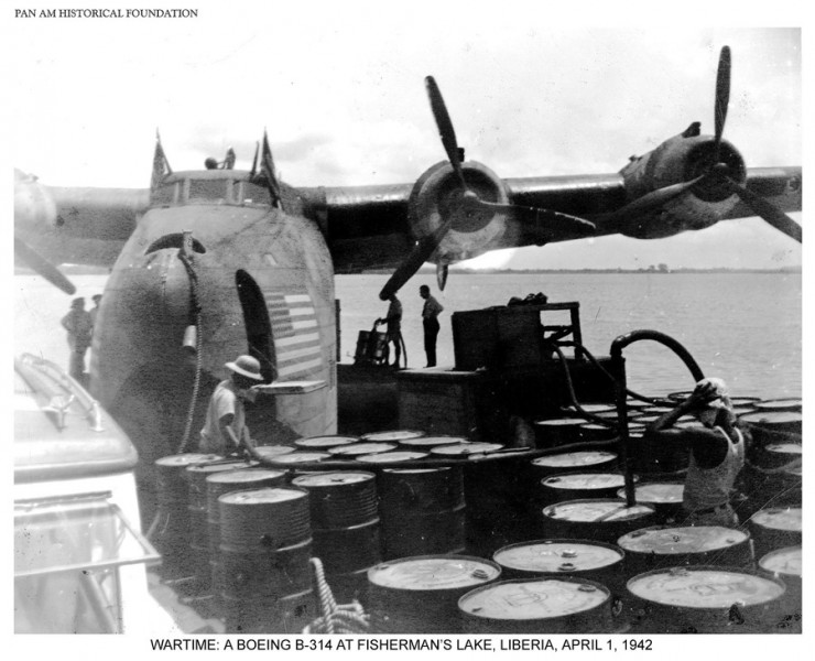 Fueling Pan Am Boeing 314 clipper at Fishermans Lake during World War Two