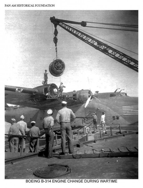 Engine change on Pan Am Boeing 314 clipper, World War Two