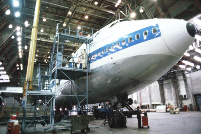 Modifications of Pan Am 747 Sea Serpent at JFK, March 1986. Photos from National Archives and Records Administration.