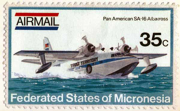 Pan Am Grumman Albatross, Micronesia stamp, 35 cents.