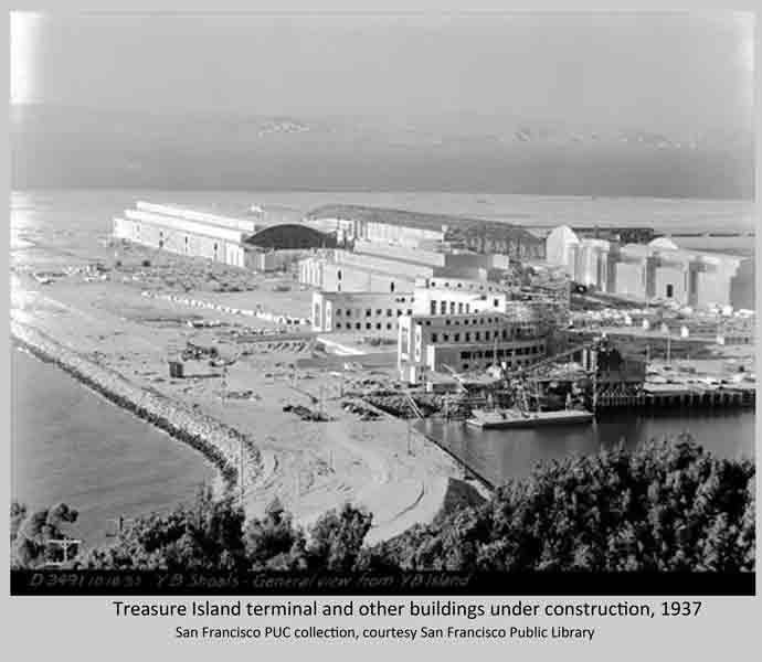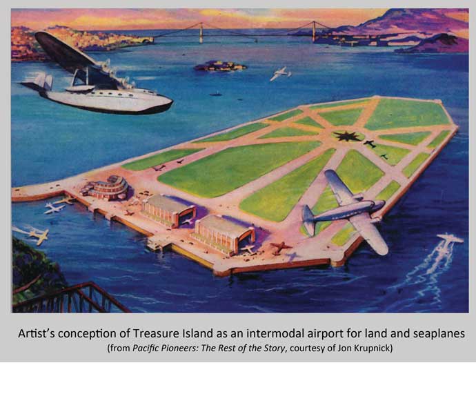There was a lot of civic energy in the air in mid-1930's San Francisco - constructive and otherwise. The Depression was making life tough for a lot of people. The city had experienced a cathartic and violent general strike in 1934. But there were tangible symbols of what a better future might bring too. Two magnificent bridges were under construction: the San Francisco-Oakland Bay Bridge and the even more spectacular Golden Gate Bridge. Civic leaders decided to boost San Francisco's up-and-coming image even further with a world's fair. And to add utility to the concept, (and get Federal dollars committed to the project) the plan called for an intermodal airport on the proposed 400-acre man-made island that would be the site of the fair.